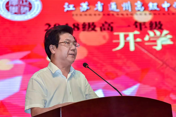 季仲平校长的典礼致辞将现场氛围推向高潮。在致辞中,他首先代表校党委、校长室向全体新生致以热烈欢迎!他强调:走进通高,同学们开启的是新征程,迎接的是新目标,托举却是个人和学校共同的教育梦想;从今天起,通高人将成为我们共同拥有的名字,在我们的生命履历中,这三个字、这里的三年,必然成为身份骄傲,熔铸于灵魂,镌刻进精神。他同时对大家提出了三点希望:让习惯成就理想;让艰苦酿出甘甜;让责任成为自觉。他祝同学们,人生之梦,始于今日,凌云未来!
